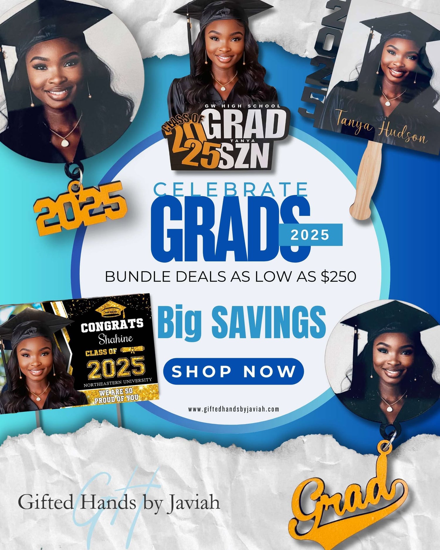 Here At Gifted Hands By Javiah, We Understand The Hustle And Bustle That Comes Along With Grad Season. We Want To Help Eleviate That Stress. Check Out Our Grad Bundles For The Celebration Of Your Grad.