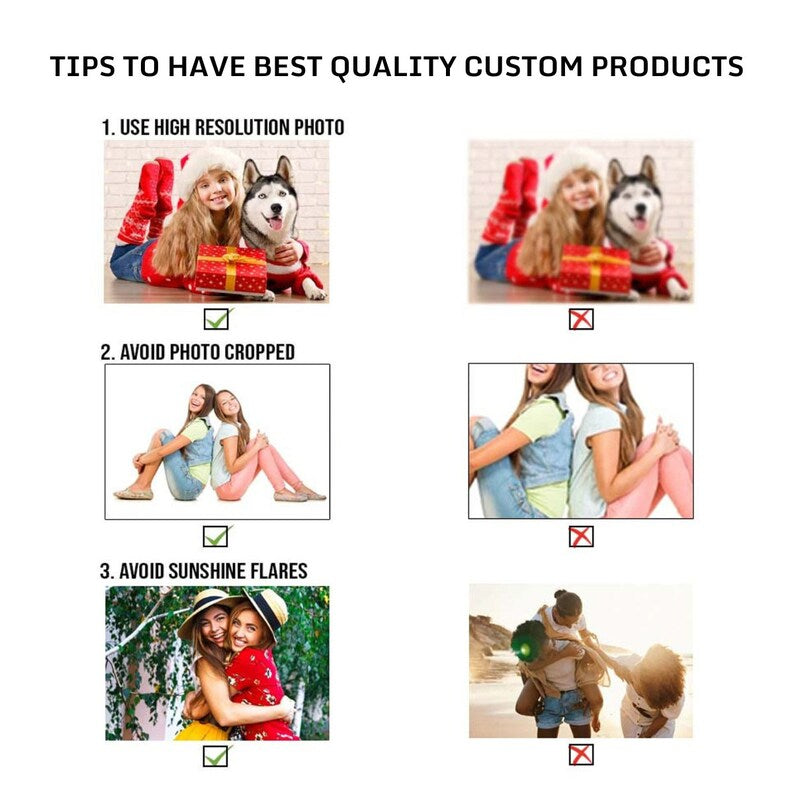 Our photo ornaments can be personalized with your family photo, wedding photo, or any photo of your chose which in turn, makes a unique and sentimental keepsake. Please refer to our images for allowable pictures that can be used.