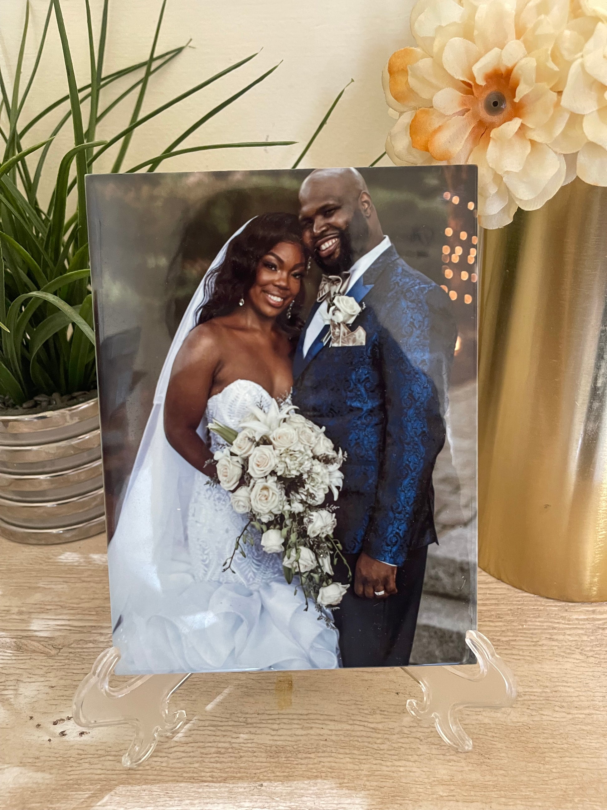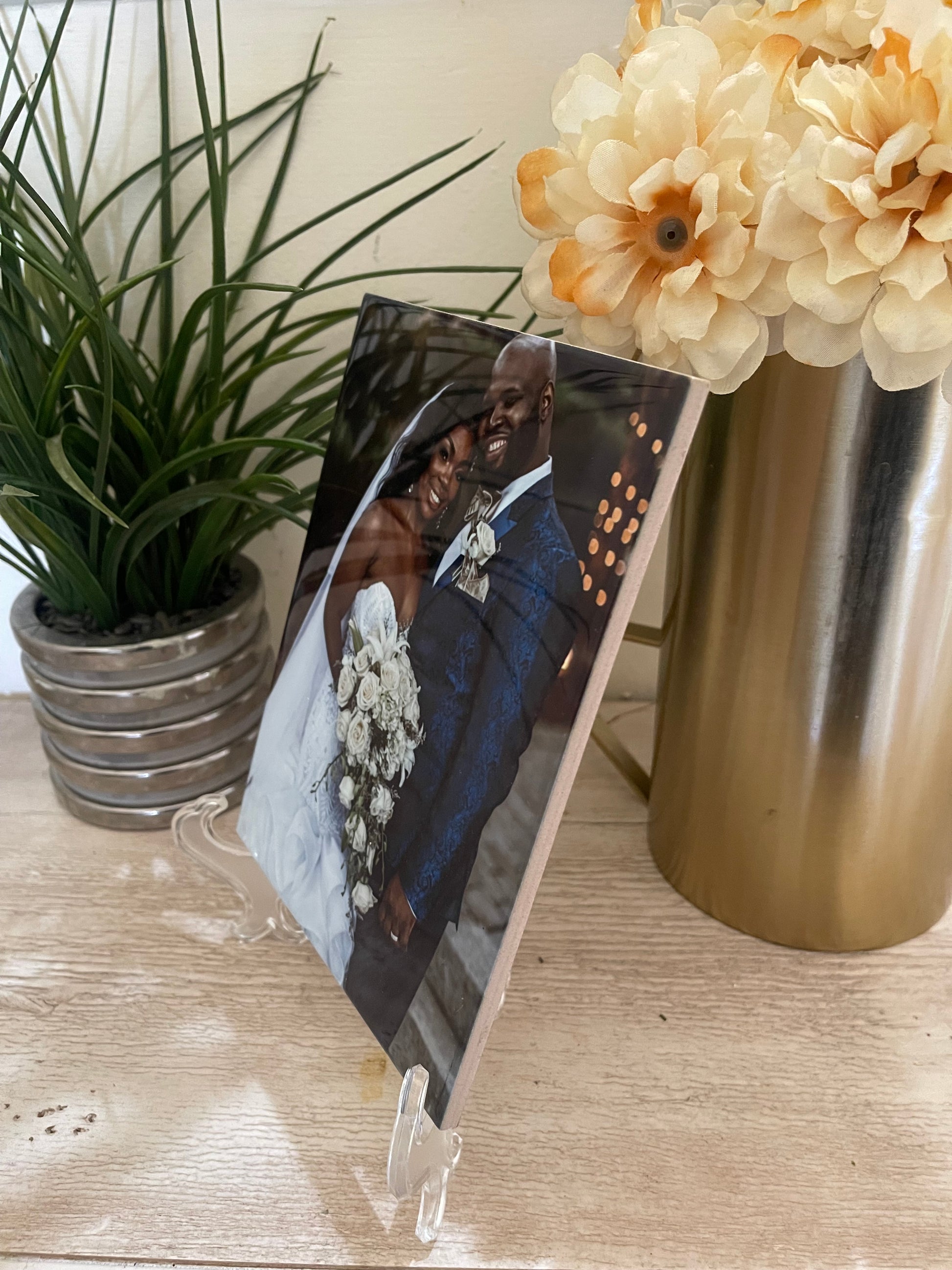 We offer a variety of different sizes that’s comes with clear acrylic easel stands. Display your photo tiles beautifully on mantels, coffee tables and bookshelves, easel also has a hook for wall hanging. Susceptible to scratches, and not recommended for surfaces which require frequent cleaning. Best for decorative use only in tile stands or framed pieces.