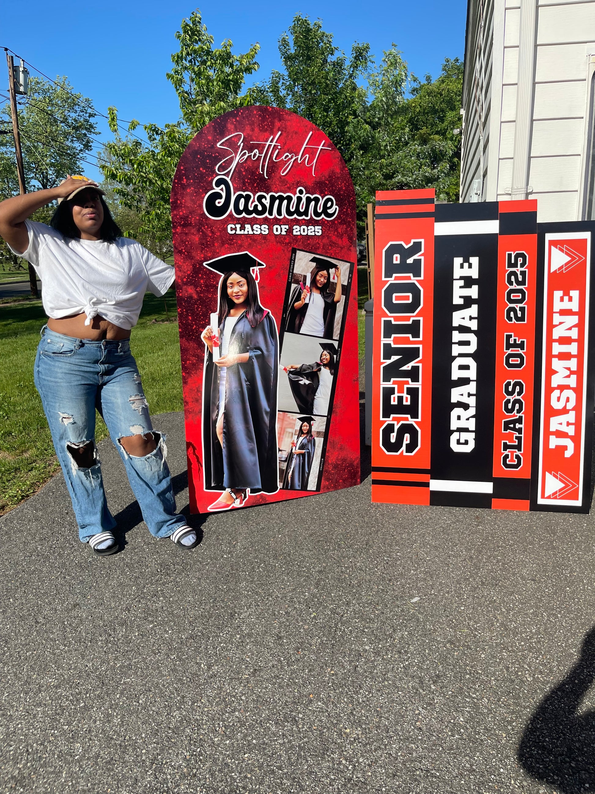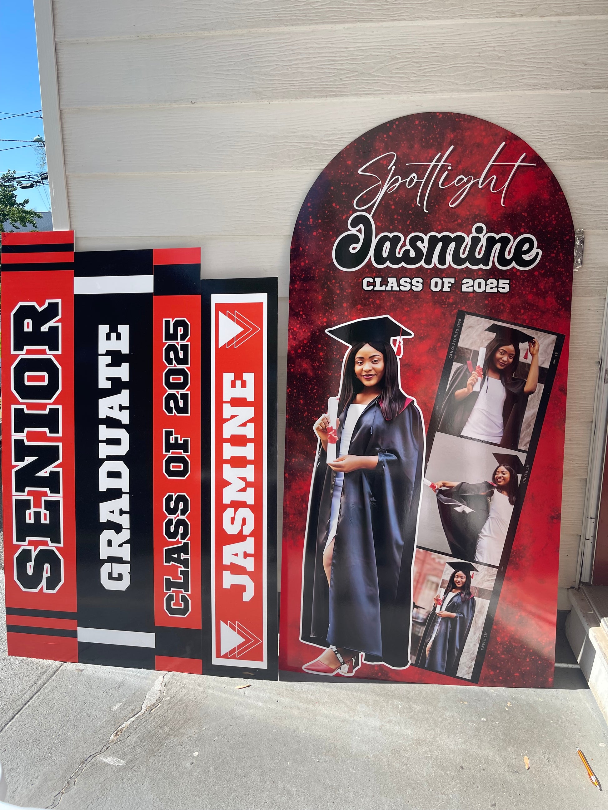 Client photos will be printed on a high quality media and then applied to coroplast/corrugated plastic sheets. For shipping purposes, boards are folded when delivered. Crease will not be shown once board is completely assembled and taped.