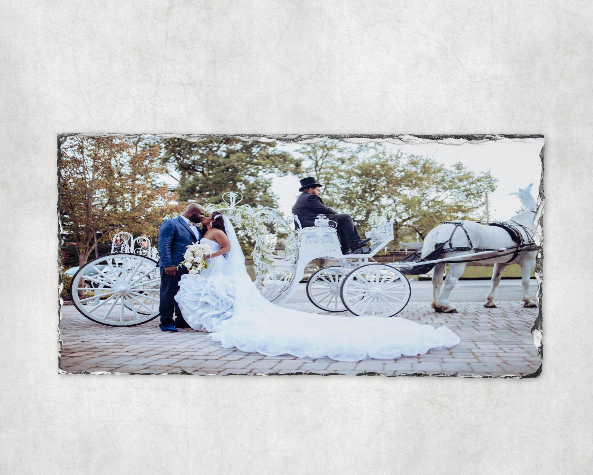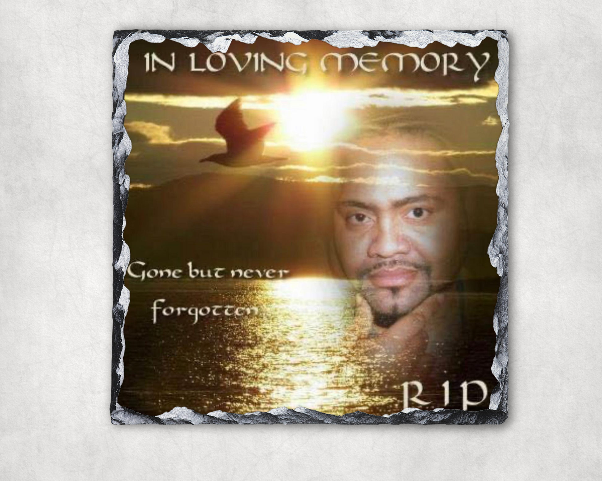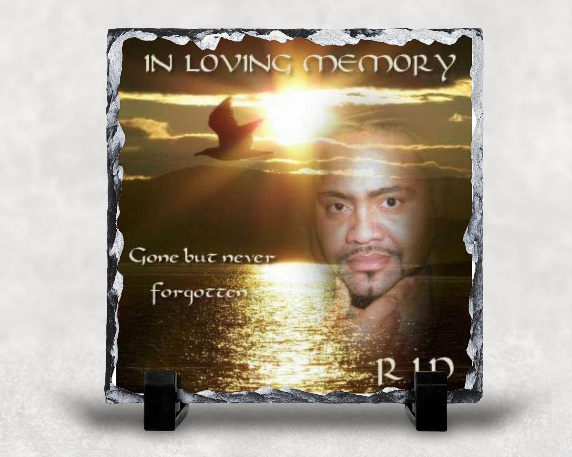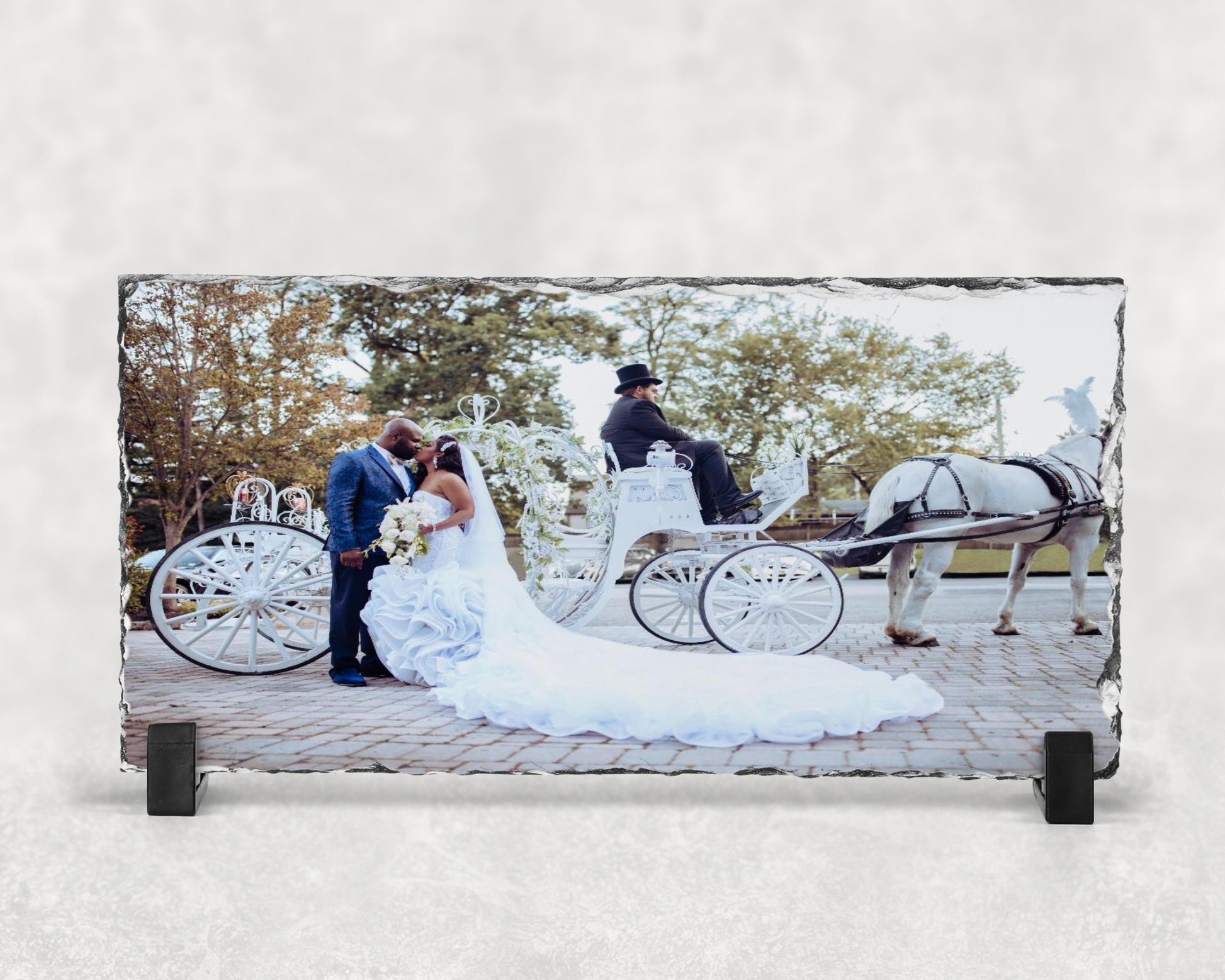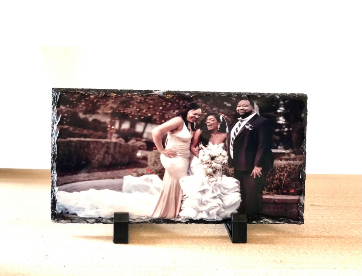 If you want to give a memory in a way that will stand out, give them a picture imprinted on a photo slate! There is something eternal about stone, it passes the test of time and does not fade or wrinkle like paper. Our photo slates will make a stunning addition to a living room or bedroom. You get to personalize it with your own photo of a special memory that will be immortalized once it is printed onto our personalized photo slate.