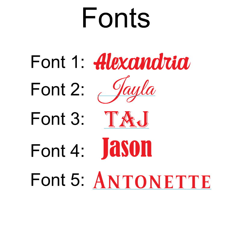 Font Style: 1,2, 3, 4, 5